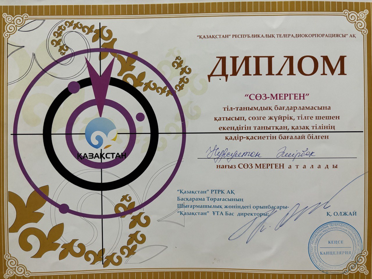 Республикалық «Сөз Мерген» сайысының жеңімпазы(Бас жүлде);