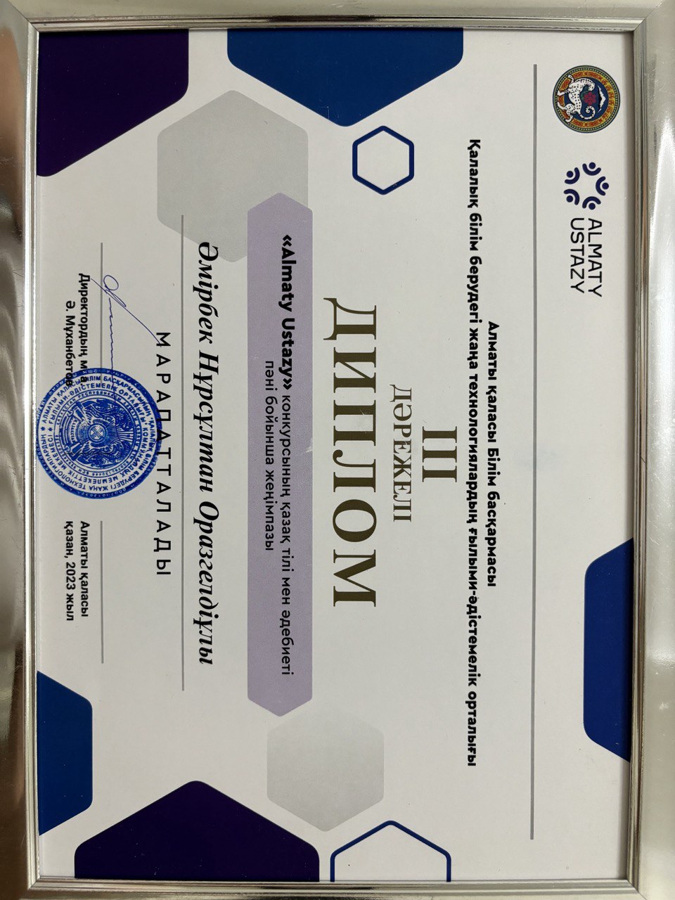 «Almaty Ustazy 2023» байқауының(III дәрежелі) жүлдегері;