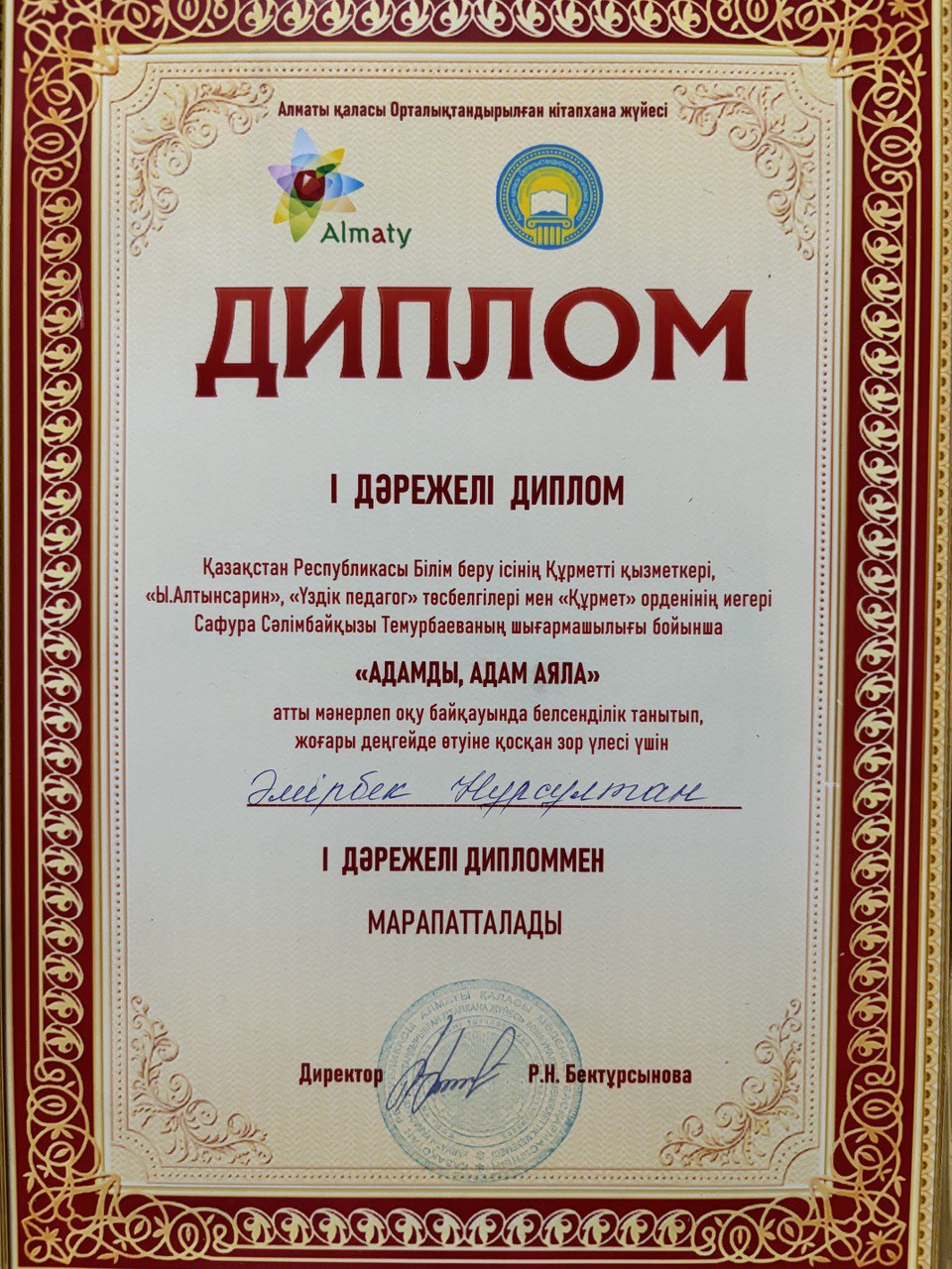 Алматы қаласы Наурызбай ауданы бойынша «2024 жылдың үздік педагогы» иегері